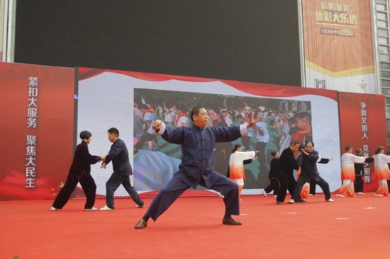 开幕式上,淮安市秋之韵艺术团、淮安市红色激情舞团、清江浦区太极拳协会、淮安市广播电视台和淮安市文化艺术学校给现场观众分别带来了《老年时装秀 油纸伞》《舞蹈 红色激情》《四世同堂梦太极》《歌伴舞 美好新时代》精彩的文艺节目。