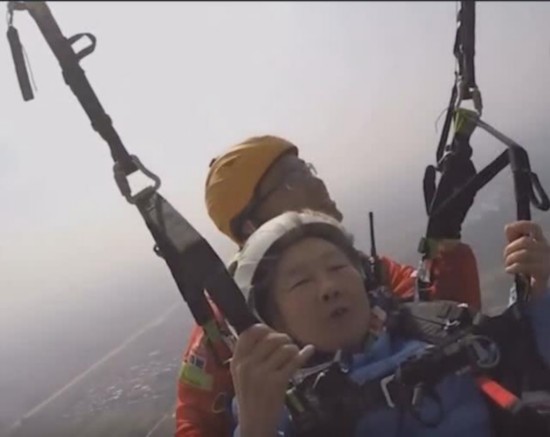 这位老奶奶就用自己的亲身经历,打破了人们的固有观念,她完成了一次次的勇敢滑翔。
