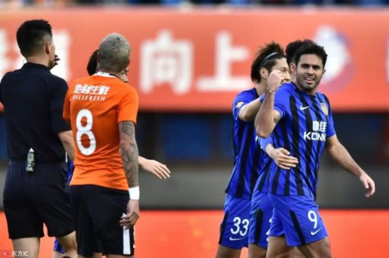 腾讯体育10月27日讯 2018中超第27轮,北京人和坐镇主场迎战江苏苏宁。上半时比赛,江苏苏宁以2-0领先,第36分钟埃德尔建功,第40分钟埃德尔梅开二度。