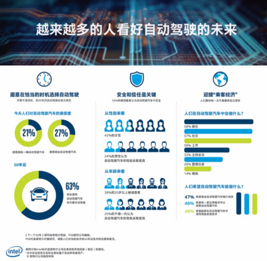 同时英特尔预测,在2050年以前,以乘客为中心的未来产值将达到7万亿美元。