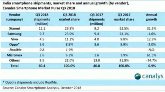 上述报告指出,印度智能手机市场的整体销量受到了最近的排灯节、燃料成本增长以及汇率波动的影响。
