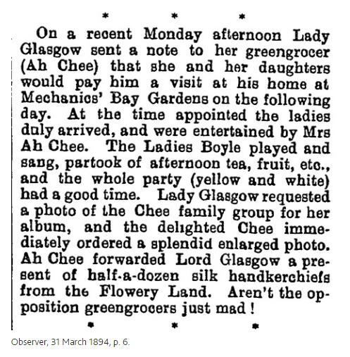 作为一名女主人,钟丘丽还在努力提高其丈夫在社区中的地位,有一次还款待了市长的夫人。图片来源:奥克兰遗产文化网站报道截图