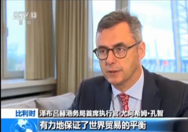 比利时 泽布吕赫港务局首席执行官 尤阿希姆·孔智:在我看来,中国承担着作为一个世界大国的责任,有力地保证了世界贸易的平衡,贸易不应只是单向的,而是双向的,我觉得像中国这样的大国正在世界上承担这样的责任。