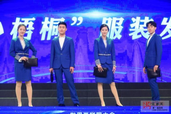 今年的志愿者服装大体上传承延续了上一届设计的蓝色基调,着重以江南水乡的“水”文化和中华传统“龙”为设计灵感,通过采撷多元丰富的传统文化精髓,辅以精致的匠心制作而成。水在中国也寓意着上善若水的精神品格,代表宽阔的胸襟和气度,这与互联网“互联互通 ”“合作共赢”的思想不谋而合。