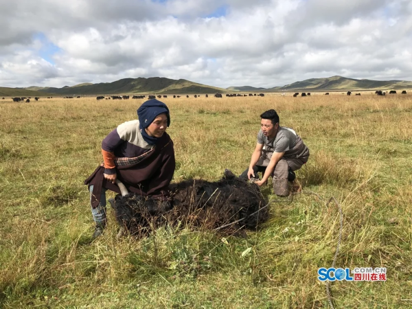 记者:你刚刚和牦牛来了个抱摔,看来采牛绒也是挺危险的。在这个过程中,你害怕过吗?