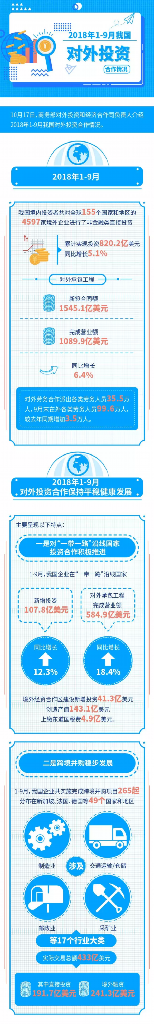 2018年1-9月我国对外投资合作情况