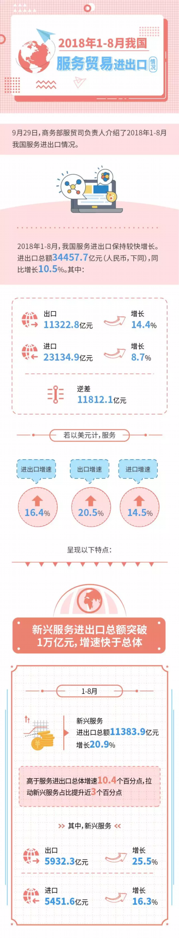 2018年1-8月我国服务贸易进出口情况