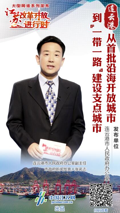 孙悟空的故事如果有现实版的写照,应该就是连云港在新的世纪后发先至,完成新时代的“西游记”。作为全国首批14个沿海开放城市之一,40年来,连云港人以“踏平坎坷成大道,斗罢艰险又出发”的勇气和自我革新精神,闯出了一条具有港城特色的发展之路。 “大型网络系列发布·江苏改革开放进行时”连云港专场今天正式上线。本场发布人——连云港市人民政府办公室副主任、市政府新闻发言人张名志,以“从首批沿海开放城市到‘一带一路’建设支点城市”为主题,讲述了连云港这40年走在改革开放前沿,抢抓机遇、拥抱机遇的精彩故事。参与发布的单位有连云港市人民政府办公室、连云港广电传媒集团和连云港报业传媒集团。