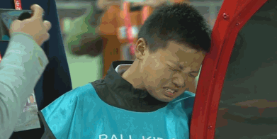 比赛结束后小球童靠在替补席痛哭
