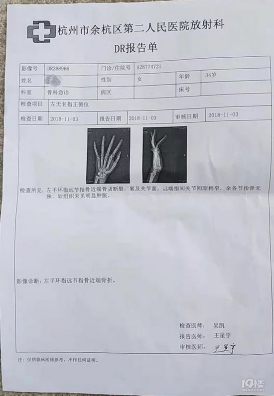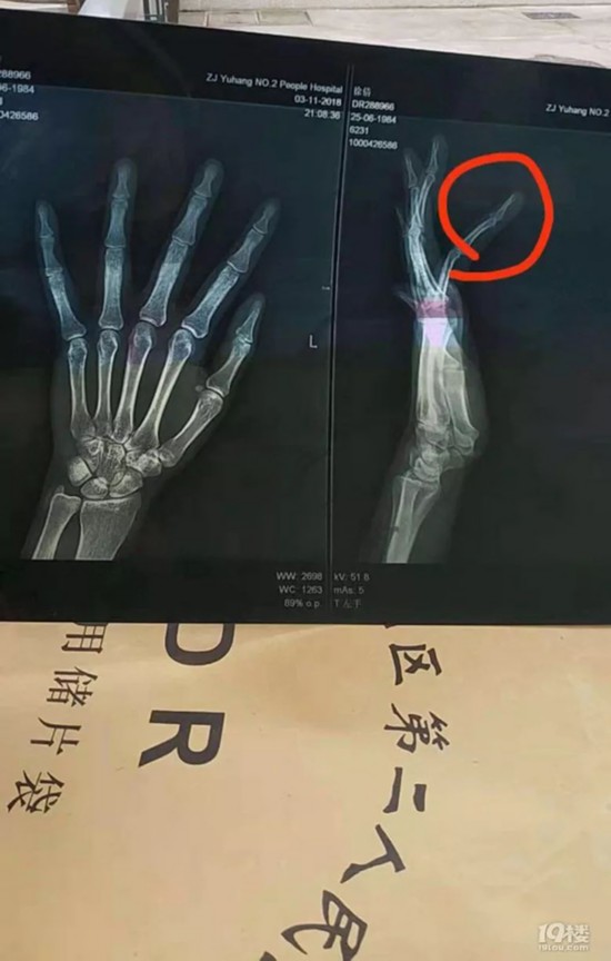 当天晚上,徐女士去了医院,拍了片子,她的无名指骨折了,全身多处挫伤。