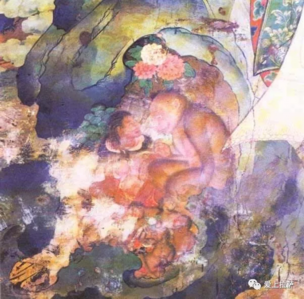 很早很早以前,观世音菩萨派一有神变示现的猕猴到西藏雪国的地方修行。这个猕猴来到了一个黑色山岩上,潜心修习菩提慈悲心,对于佛法有了很深的领悟。就在这时,有一个住在邻近地方的岩魔女来到他面前,用非常爱慕的口气说:“让我们结成夫妻吧!”猕猴与魔女结为眷属以后,生下了六只小猴,他们生性爱好各不相同,在树林里各自寻找生活。