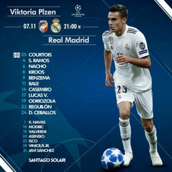腾讯体育11月8日讯 今日凌晨4:00,欧冠第4轮小组赛中,皇马客场出战比尔森胜利。皇马首发已公布,贝尔搭档本泽马冲锋,卢卡斯-巴斯克斯与塞瓦略斯轮换出战,库尔图瓦担任主力门将,伊斯科阿森西奥莫德里奇打替补: