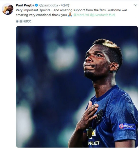 博格巴在推特上致敬尤文球迷