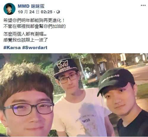 卡萨则是在休赛期回到中国台湾见一见自己的老队友们,顺便好好地休息一下。作为“狼王”的他自然是要好好安排一下自己的“弟弟”们。FW的上单MMD发推晒出了Karsa,蛇蛇和自己的合照,Karsa气色似乎还不错奥。在推特中MMD也表示不论卡萨在哪里,他都会继续给卡萨加油,看来卡萨明年应该还会留在RNG了。