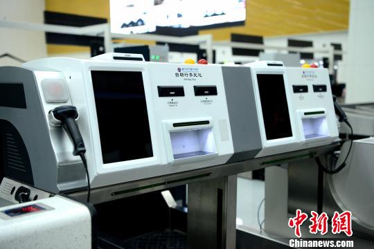 新增的自助行李托运机。记者王东明 摄