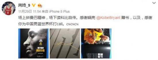 周琦感谢科比