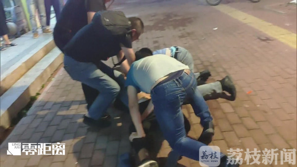 在汕头的街头,面对突如其来的抓捕,一名男子开始试图冲突便衣民警的包围圈。