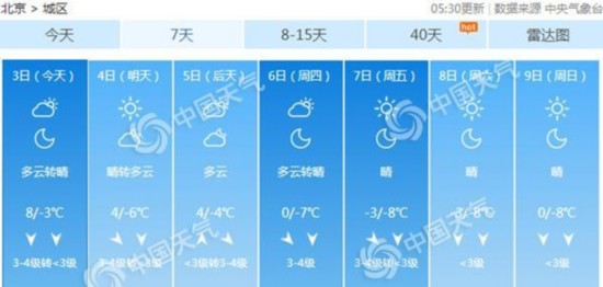中国天气网讯 今天(3日)北京风力加大,阵风6级左右,东部地区局地早晨有扬沙,请注意防风保暖。本周多冷空气影响,中后期降温明显,最高气温或将跌破冰点,请注意关注临近预报,提前做好防范。