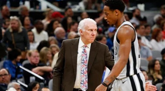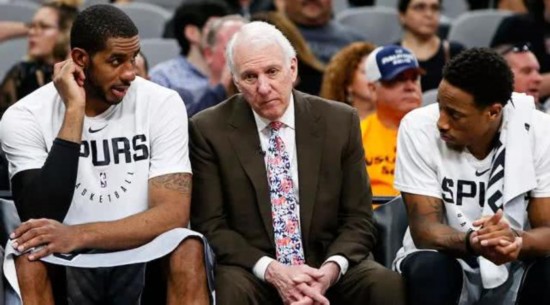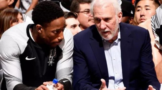 跟火箭打到第四节,早让火箭打花了。德罗赞和阿尔德里奇两个领袖坐在板凳席末端,各自面色铁青。波波维奇比赛也不指挥了,溜达过去,说你们俩给我腾个地儿。就坐在俩人中间,在比赛里开说。俩人的眼神都空了,波波维奇继续说。说完,拍拍俩人肩膀,溜达走了。