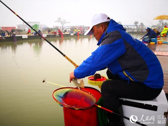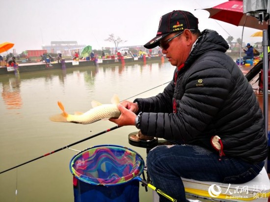 “上饵、抛竿……”上午8点,比赛正式开始。比赛中,浮漂一动,选手一兜、一提,鱼儿顺利“落网”。
