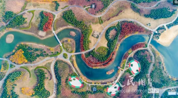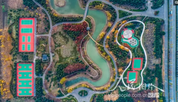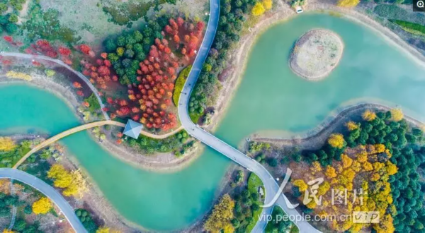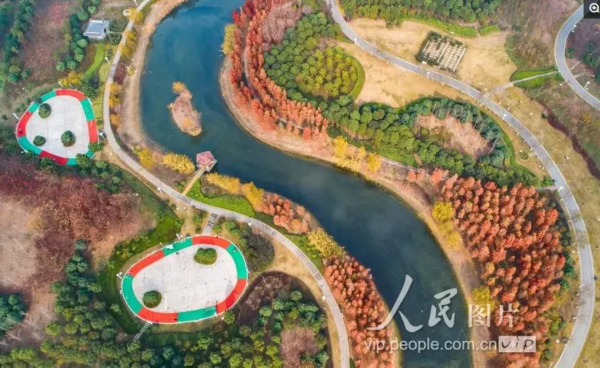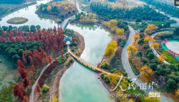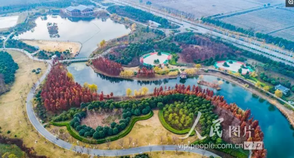 2018年12月1日,阳光明媚,泗洪城东公园色彩斑澜,绚丽多姿,既像童话世界,又似一只巨大的天然调色盘。