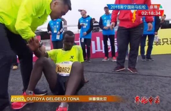 南宁国际马拉松冠军冲线后被拽停