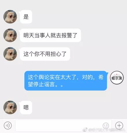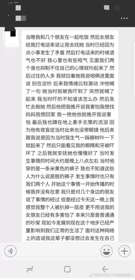 @哈尔滨大学城那些事儿官方微博收到当事人学生干部投稿,称已联系到事件当事人,写下了整个过程,并称会去有关部门报案,相信有关部门肯定会还原事件的真相!