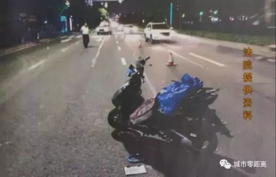 事故现场视频内容显示:晚上8时左右,一名行人闯红灯过马路,一辆摩托车向前行驶,撞倒行人,摩托车司机和乘客同时摔倒在地。视频显示,胡伦霞手机的屏幕灯光没有熄灭。