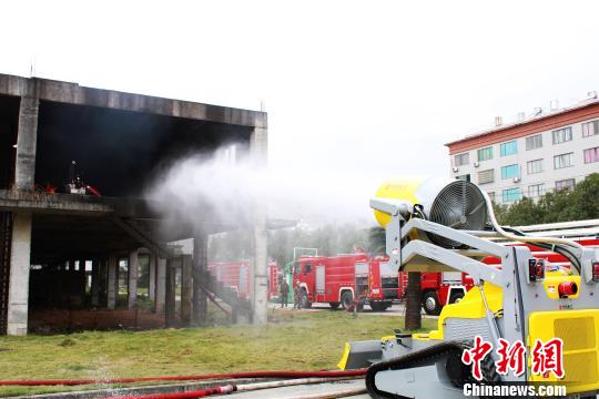 图为智能消防机器人参与救援。叶茂 摄 叶茂 摄