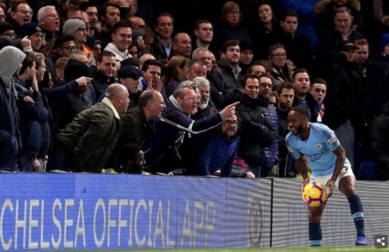 上周末,在切尔西主场对阵曼城的比赛中,蓝军赢下了比赛的胜利,但是球迷却让他们丢掉了该有的风度。在上半场比赛中,曼城球员斯特林在马修-哈丁看台附近的广告牌发球时,一位球迷带有种族歧视性地称斯特林为“f************black c***”,这个言论引起了英国网络上极大的抗议。