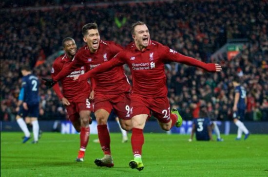 第33分钟,卢卡库拉边传中,阿利森扑球脱手,跟进的林加德倒地卧射破门,比分变成了1-1!第73分钟,马内左路突破底线倒三角传球,德赫亚倒地挡了一下,刚刚替补出场的沙奇里高速插上右脚爆射,皮球飞进大门右上角,2-1!第80分钟,沙奇里直传,菲尔米诺脚后跟做球被挡了一下,沙奇里跟进左脚大力推射,皮球打中拜利脚下弹起破网,3-1!沙奇里梅开二度!最终利物浦3-1击败曼联重返榜首。