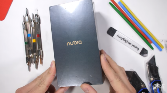 【环球网科技综合报报道】据外媒12月17日消息,中兴子品牌努比亚于10月底宣布推出X手机。这款手机配有两个屏幕和两个指纹传感器,可解决在手机没有边框下自拍的问题,用户可通过手机背面的辅助屏幕以及传感器来自拍。近日,Youtube上疑似该手机接受JerryRigEverything传统测试的视频曝光。