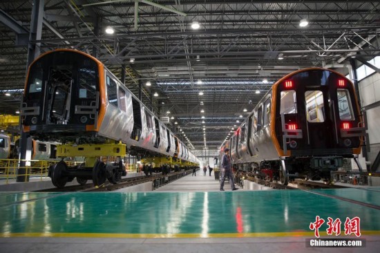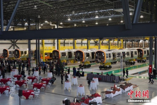 马萨诸塞湾运输局向中车订购的152节橙线车辆和252节红线车辆将逐步投入使用并替代两条线现有的老旧车辆。中新社记者 廖攀 摄