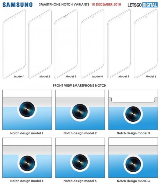专利同时还显示这些设计均基于三星此前展示过的infinity-O和infinity-U屏幕,尽管几款型号的设计略有不同但是所有设计均有刘海。通常设计专利并不代表着会投入到生产中,而且三星以往的努力都是致力于解决刘海问题。