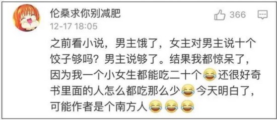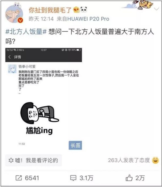 于是,有博主灵魂一问:so……北方人饭量普遍大于南方人?