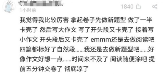 不过,也有人考完以后表示一点都不担心,反正大家都觉得难,为什么要伤心呢?
