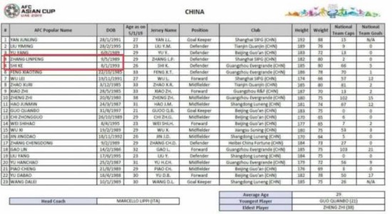 腾讯体育12月28日讯 在亚洲杯参赛24队向亚足联提交了23人参赛名单后,亚足联也在官网公布了各队的名单和号码。国足的23人报名名单中,有伤在身的门将张鹭被暂时放弃,但号码方面,亚足联则闹出乌龙,原本穿5号球衣的张琳芃,竟然去和石柯“抢”4号战袍。