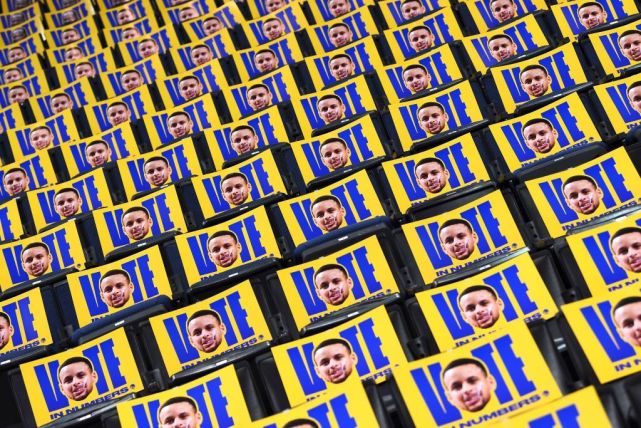 今天赛前联盟刚公布了全明星第一阶段投票结果,勇士今天也在现场为球队几个球星拉票,声势浩大。