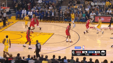 加时赛最后5.5秒,火箭执行最后一攻,哈登迎着两人防守三分命中,火箭135-134反超。随着杜兰特超远三分不中,火箭在客场实现惊天逆转。