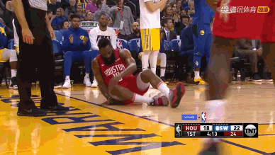 首节结束前4分09秒,场上出现意外,哈登防守时被勇士中锋卢尼的铁肘砸到,痛苦倒地,不得不离场返回更衣室。不过,哈登经过简单检查很快就回到了场上。