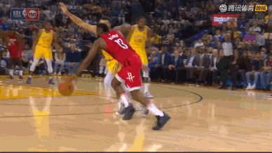 上半场临近结束前,杜兰特三分线外接球,他成功骗哈登犯规,在身体失去平衡的情况下把球投中。不过,裁判判定这并非投篮犯规,哈登走过去将坐在地上的杜兰特拉了起来。