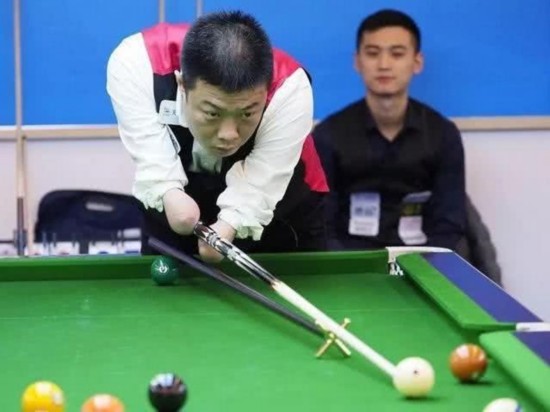 由于身体原因,许多对于平常人来说很简单的动作,对他而言却并非易事。但因为对台球的热爱,他拿起球杆一遍又一遍地尝试、练习。如今的他,不仅可以完成很多高难度动作,甚至可以自己为球杆上巧克粉。对于台球这样一项需要身体高度协调的运动,他用球杆挑起了快乐的旗帜。