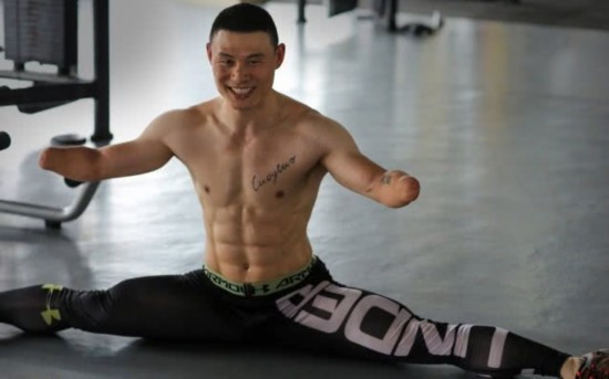 今年38岁的倪敏成在10岁时因意外不幸失去了双手,可他现在做的,是别人认为最不可能做到的事情——成为一名健身教练。
