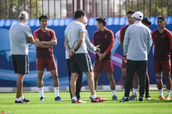 国足按惯例在比赛日第2天仅仅安排了1小时左右的恢复性训练。在首战中受伤的武磊还是随队亮相训练场。而首轮停赛的队长郑智从昨天训练情况看状态也非常不错。由于在首轮比赛中,中国队不仅全取3分,且没有领得红、黄牌,因此全队将可以以一套完整的阵容应对菲律宾队的挑战。至于锋线与防线首战的表现,里皮整体上还是给予了肯定。