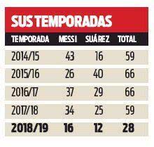 在加盟巴萨以来,苏亚雷斯的贡献一直非常稳定,2014-15赛季,苏神在西甲打入16球,而他的赛季其实在2014年10月底才开始,那个赛季梅西打入43球,两人联手贡献了59球;在2015-16赛季,苏神在巴萨爆发,单赛季打入40球,拿到西甲金靴奖和欧洲金靴奖,而梅西当时打入26球,两人联手贡献66球;来到2016-17赛季,苏神打入29球,梅西打入37球,两人的进球数还是66球;上个赛季,梅西打入34球,苏神打入25球,两人加起来打入59球。