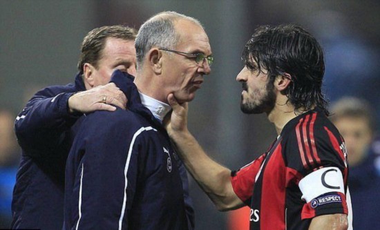 在那些年里,加图索和米兰一起南征北战,红黑色的魔鬼让欧洲颤抖。这大概也是加图索深爱着米兰的原因——在他职业生涯早期混迹小球会之时,丝毫没有成为球星的潜质,是米兰抛来了橄榄枝,并且在三年无冠且加图索表现并不突出时,没有放弃他,然后一起成就了米兰王朝的霸业。