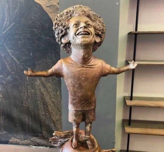 梅西的这尊半身塑像,确实与阿根廷巨星本尊极为神似,至少在这个方面,阿尔祖加雷的这件艺术品就值得大书特书。毕竟在这尊梅西半身塑像亮相之前,C罗、萨拉赫的雕像,是这样和这样的……