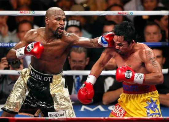 2015年的一番战被称为“世纪之战”。两人大战12回合,梅威瑟取得了比赛胜利,帕奎奥一方拿到约1.33亿美元,梅威瑟的收入则直逼2亿美元,这场比赛各方的总收入超过6亿美金,创下职业拳击历史上单场收入的最高纪录!两人的PPV460万同时也创下历史新高,甚至后来梅威瑟与嘴炮的跨界大战虽然噱头和眼球更强,PPV才440万,仍然无法超过两人一番战的历史最高。