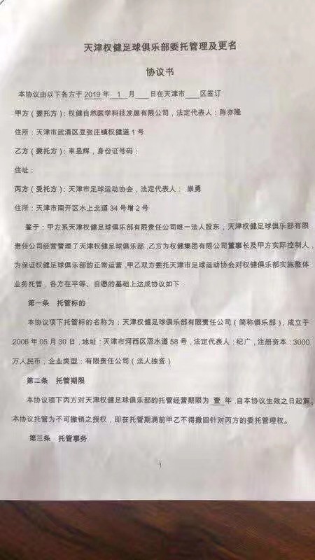 目前正处在风雨飘摇中的天津权健足球俱乐部未来走向受到外界广泛关注,此前就有消息声称权健足球俱乐部将由天津市足协托管一年。如今这一消息,随着国家企业信用信息公示系统公示似得到实锤。