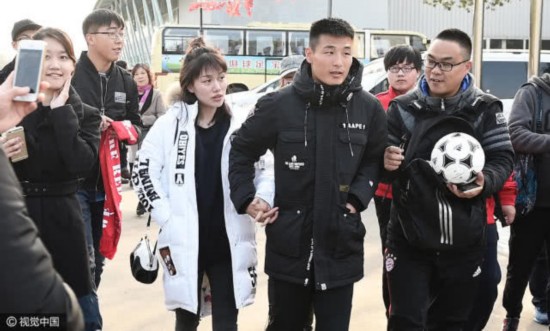 武磊携妻子回到根宝基地